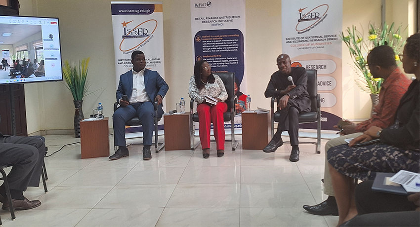Prof. Quartey revealed that ISSER has embarked on the development of a dedicated data repository, aimed at hosting essential data and research evidence on agent networks. He also highlighted a collaboration with the Ministry of Finance and financial sector regulators to develop a unified financial inclusion database for Ghana. These, he said, represent opportunities for collaboration with industry, with great potential for impact across the development of the digital finance ecosystem in Ghana.